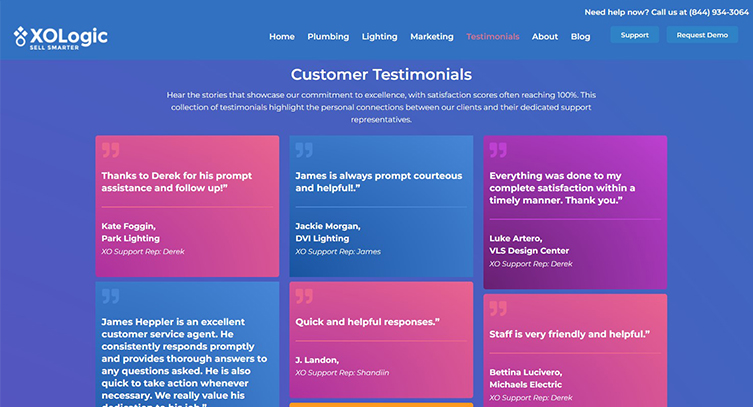 XOLogic received a large number of testimonials in a single month and asked me to create a dedicated page on their main site to showcase them. I designed and developed the page to highlight these testimonials in a clean, accessible layout, ensuring they were easy for visitors to read and added credibility to the brand.